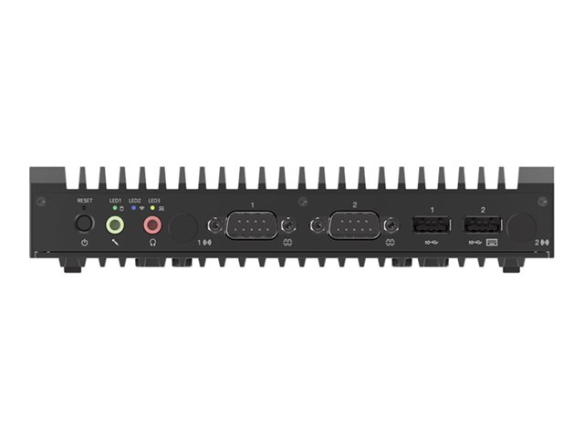 | Grensesnitt | 2 x USB 3.2 Gen 2 (2 fronts) 1 x lydutlinje (1 front) 1 x mikrofon (1 front) 2 x seriell (RS-232/422/485) (2 fronts) (RS232 / RS422 / RS485, BIOS valgbar) 2 x USB 2.0 (2 bak) 1 x HDMI (1 bak) 1 x DisplayPort 1.4 (1 bak) 2 x LAN (2.5Gigabit Ethernet) (2 bak) 2 x Wi-Fi-antenne (2 bak) |