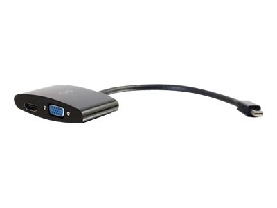 C2G 20cm Mini DisplayPort to HDMI or VGA Adapter Converter 4K UHD - Black - Video adapter - Mini DisplayPort hann til 15 pin D-Sub (DB-15), HDMI hunn - 20.3 cm - skjermet - svart - 4K-støtte 80935