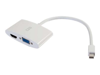 C2G 20cm Mini DisplayPort to HDMI or VGA Adapter Converter 4K UHD - White - Video adapter - Mini DisplayPort hann til 15 pin D-Sub (DB-15), HDMI hunn - 20.3 cm - skjermet - hvit - 4K-støtte 80936