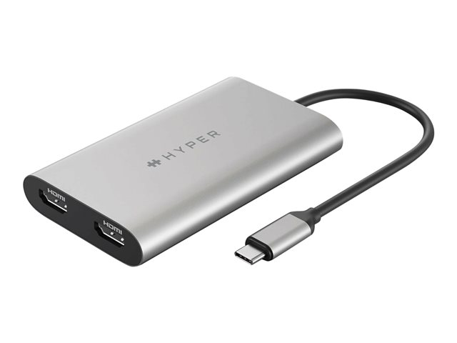 HyperDrive Dual - Video adapter - 24 pin USB-C til HDMI, 24 pin USB-C - USB Power Delivery (100 W), 4K 30 Hz (HDMI 2. display), 4K 60 Hz (HDMI 1. display) HDM1-GL