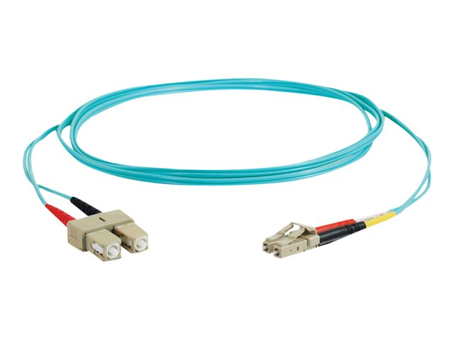 C2G LC-SC 10Gb 50/125 OM3 Duplex Multimode PVC Fiber Optic Cable (LSZH) - Nettverkskabel - SC flermodus (hann) til LC multimodus (hann) - 3 m - 3 m - fiberoptisk - dupleks - 50 / 125 mikroner - OM3 - halogenfri - akvamarin
