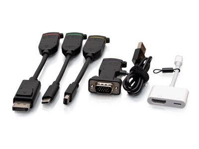 | Antall inkludert x Type | Video adapter - Mini DisplayPort (hann) til 19-pin HDMI type A (hunn) Video adapter - 20-pins DisplayPort (hann) til 19-pin HDMI type A (hunn) Video adapter - 24-pins USB-C (hann) til 19-pin HDMI type A (hunn) Video adapter - Lightning (hann) til 19-pin HDMI type A (hunn) Video adapter - 14 pin mini-VGA (hann) til 19-pin HDMI type A (hunn) |