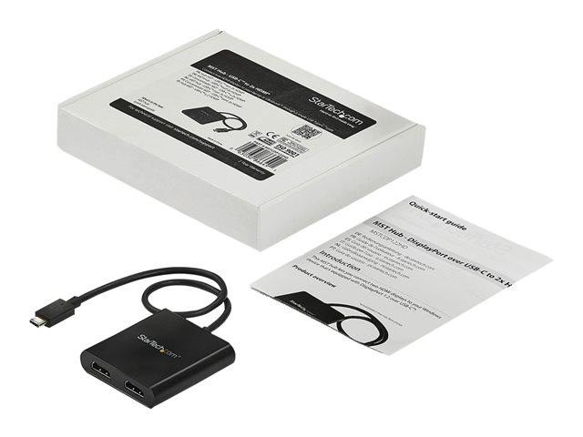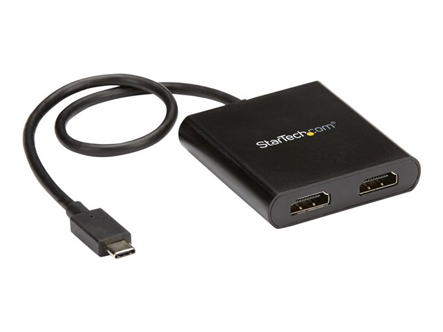 StarTech.com 2-Port Multi Monitor Adapter, USB-C to 2x HDMI Video Splitter, USB Type-C DP Alt Mode to HDMI MST Hub, Dual 4K 30Hz or 1080p 60Hz, Compatible with Thunderbolt 3, Windows Only - Multi Stream Transport (MSTCDP122HD) - Adapterkabel - USB-C hann til HDMI hunn - svart - 4 K 30 Hz (3840 x 2160) støtte, støtte for 2560 x 1600 (WQXGA) 60 Hz - for P/N: TB33A1C