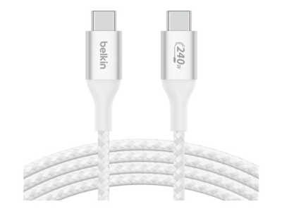 Belkin BoostCharge - USB-kabel - USB-C (hann) til USB-C (hann) - USB 2.0 - 1 m - opp til 240 W strømforsyningsstøtte - hvit CAB015BT1MWH