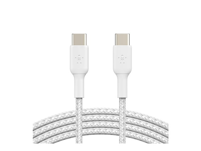 Belkin BoostCharge - USB-kabel - USB-C (hann) til USB-C (hann) - USB 2.0 - 3 A - 2 m - USB Power Delivery (60W), flettet kabel - hvit CAB004BT2MWH