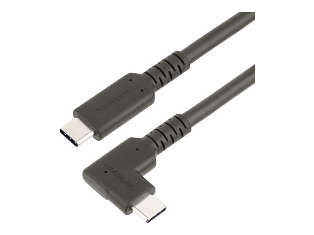 StarTech.com 1.6ft (50cm) Rugged Right Angle USB-C Cable, USB 3.2 Gen 2 (10 Gbps), USB C to C Data Transfer Cable, 4K 60Hz DP Alt Mode, 100W Power Delivery - 90 Degree USB-C Cable (RUSB31CC50CMBR) - USB-kabel - USB-C (hann) rett til USB-C (hann) rettvinklet - USB 3.2 Gen 2 - 50 cm - 4K 60Hz støtte, robust - svart