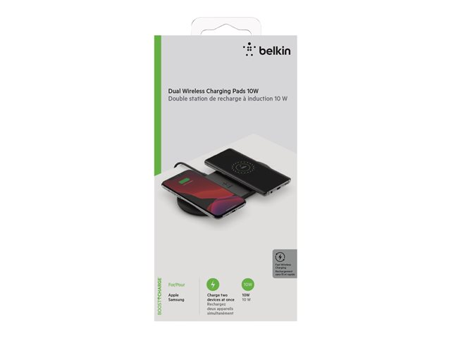 Belkin BoostCharge Dual - Trådløs ladepute + AC-strømadapter - 10 watt - svart WIZ002VFBK