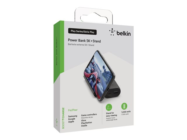 Belkin BoostCharge - Play Series - strømbank - 5000 mAh - 12 watt - 2 utgangskontakter (USB, 24 pin USB-C) - på kabel: USB-C - svart
