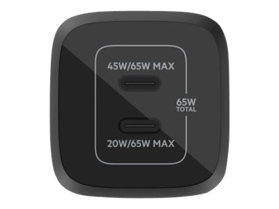 Belkin BoostCharge Pro - Strømadapter - PPS-teknologi - 65 watt - 3.25 A - PD 3.0, Fast Charge - 2 utgangskontakter (USB-C) - svart WCH013VFBK