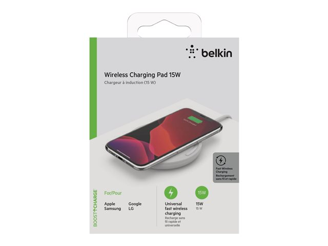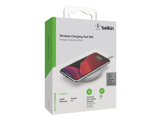 Belkin BoostCharge - Trådløs ladepute + AC-strømadapter - 15 watt - QC 3.0 - hvit