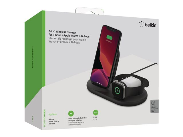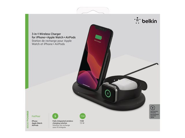 Belkin BoostCharge - Trådløst ladestativ - 7.5 watt - svart - for Apple AirPods; AirPods Pro; iPhone 11, 12, 7, 8, SE, X, XR, XS, XS Max; Watch