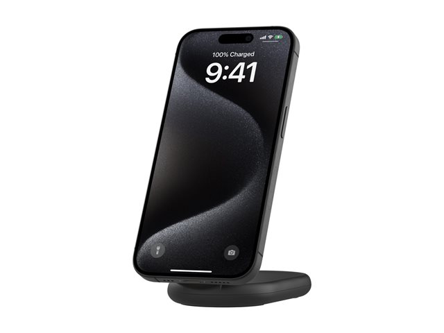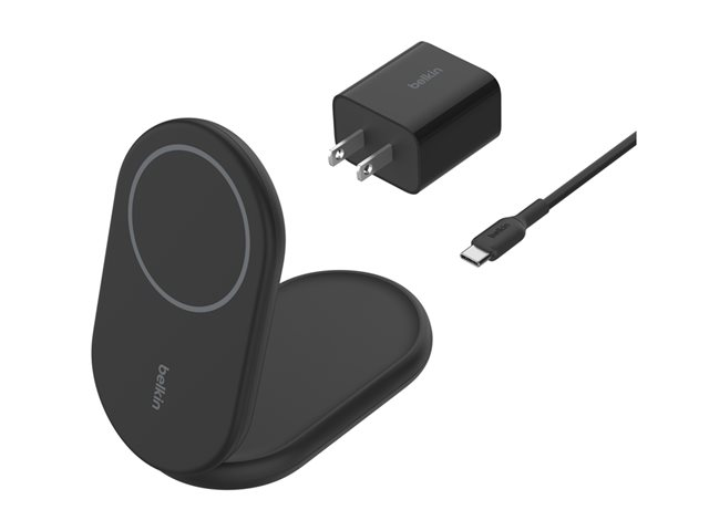 Belkin BoostCharge - Trådløst ladestativ - magnetisk, sammenleggbar, med Qi2 + AC-strømadapter - 15 watt - 3 A - Fast Charge, Power Delivery 3.1 - svart WIB007VFBK