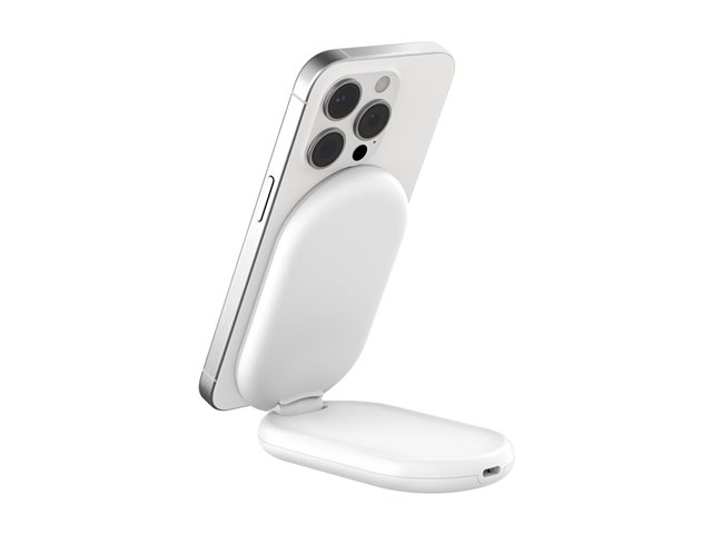Belkin BoostCharge - Trådløst ladestativ - magnetisk, sammenleggbar, med Qi2 + AC-strømadapter - 15 watt - 3 A - Fast Charge, Power Delivery 3.1 - hvit