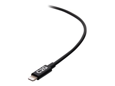 C2G 10ft (3m) USB-C Male to Lightning Male Sync and Charging Cable - Black - Lightning-kabel - 24 pin USB-C hann til Lightning hann - 3.05 m - svart - USB Power Delivery (20 W), up to 480 Mbps