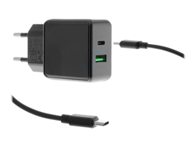 Insmat TRIDON Series Dual USB Travel Charger - Strømadapter - 20 watt - 3 A (24 pin USB-C) - svart