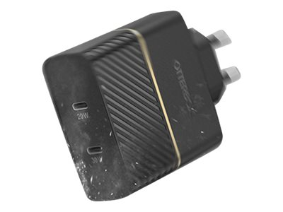 OtterBox Wall Charger - Strømadapter - 50 watt - 3 A - PD 3.0, USB BC 1.2 - 2 utgangskontakter (USB-C) - svart glimt 78-52724