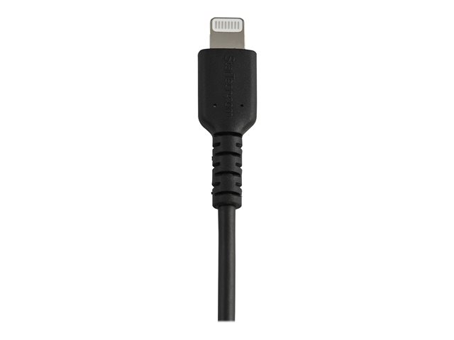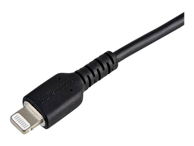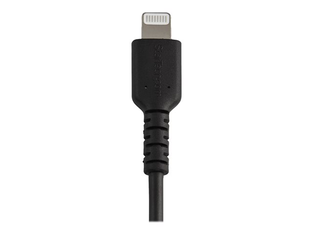 StarTech.com 12 in(30cm) Durable Black USB-A to Lightning Cable, Heavy Duty Rugged Aramid Fiber USB Type A to Lightning Charger/Sync Power Cord, Apple MFi Certified iPad/iPhone 12 Pro Max - iPhone 7/8/11/11 Pro - Lightning-kabel - USB hann til Lightning hann - 30 cm - svart RUSBLTMM30CMB