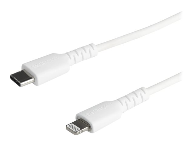 StarTech.com (1m) Durable White USB-C to Lightning Cable, Heavy Duty Rugged Aramid Fiber USB Type A to Lightning Charger/Sync Power Cord, Apple MFi Certified iPad/iPhone 12 Pro Max - iPhone 7/8/11/11 Pro - Lightning-kabel - Lightning hann til USB-C hann - 1 m - hvit RUSBCLTMM1MW