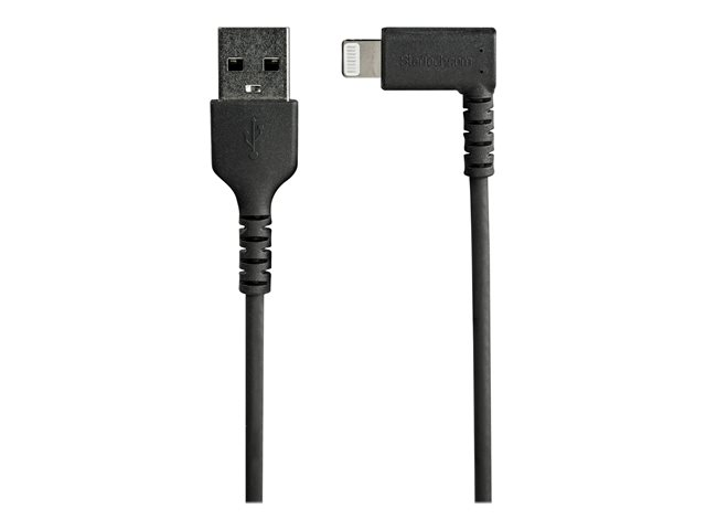 StarTech.com 3ft (1m) Durable USB A to Lightning Cable, Black 90° Right Angled Heavy Duty Rugged Aramid Fiber USB Type A to Lightning Charging/Sync Cord, Apple MFi Certified, iPhone 12 Pro - iPhone 7/8/11/11 Pro - Lightning-kabel - Lightning hann vinklet til USB hann - 1 m - dobbeltisolert - svart
