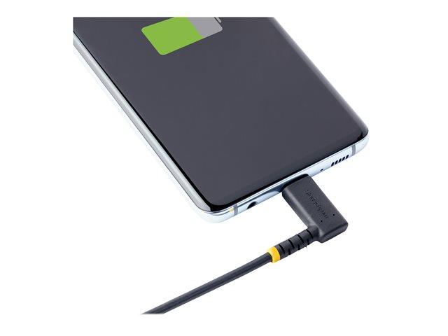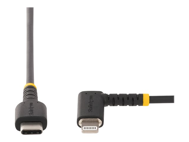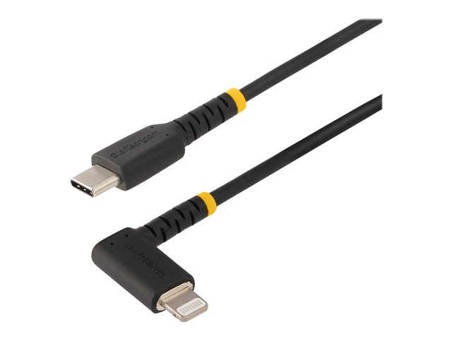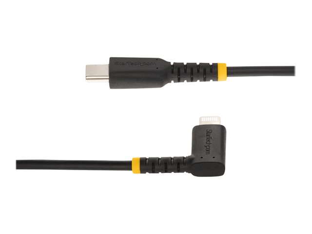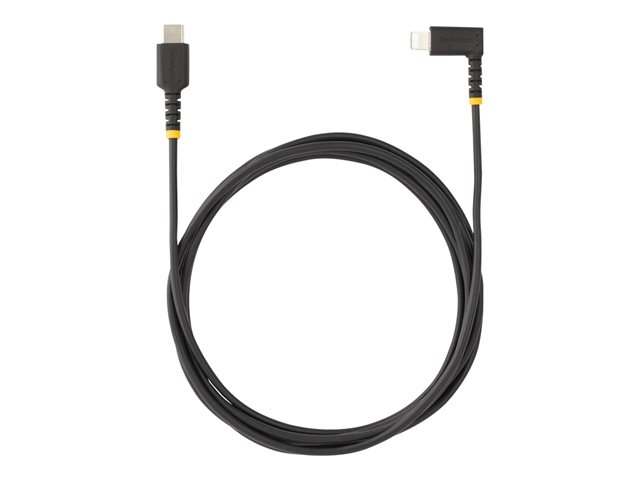 Establish a right-angle connection to a Lightning-enabled device (e.g., iPhone, iPad, iPad Mini, and some iPods) and to a USB Type-C power source, using this 6 feet (2 m) Durable USB-C to Lightning cable.