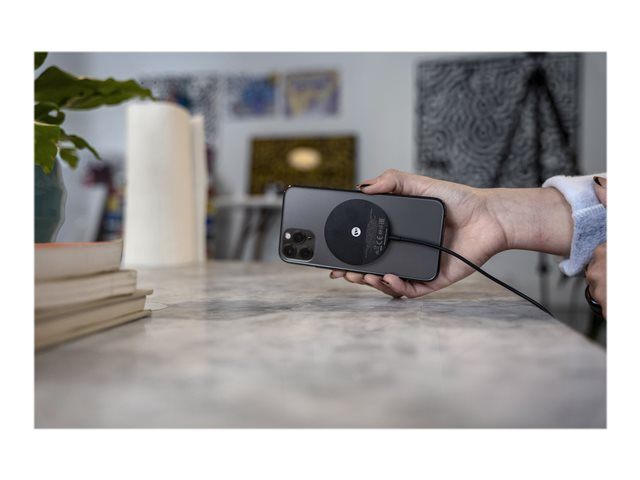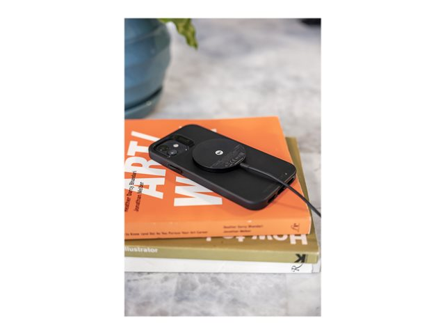 Universell trådløs lader, kompatibel med MagSafe. Elegant og kraftig, snap+ trådløs lader tilbyr opptil 15 W med trådløs effekt. Ladernes magnetiske plate gjør den kompatibel med MagSafe-iPhone- samt andre iPhone- og Android-enheter. Hurtiglader opptil 15 W. Magnetisk felt sørger for en nøyaktig plassering. Lader ved kontakt - bare fest laderen og ladingen begynner med en gang. Lader gjennom tynne deksler. Strøm kan sendes gjennom deksler som er opptil 3 mm tykke.