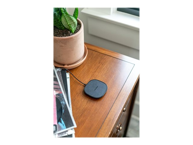 Ikke la størrelsen lure deg. Denne trådløse ladeplaten slår til med sin raske ladekompatibilitet. Den trådløse ladeplaten lader kompatible smarttelefoner og trådløst tilbehør effektivt og raskt. Bare plasser din Qi-aktiverte enhet på platen, og ladingen begynner ved kontakt. I tillegg gir det førsteklasses stoffet snev av stil til ethvert skrivebord eller bordplate.