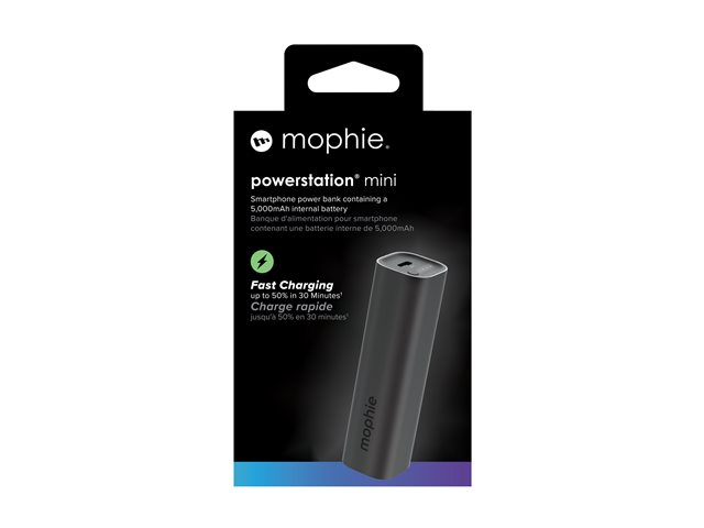 mophie powerstation mini - Strømbank - 5000 mAh - 20 watt - PD (24 pin USB-C) - på kabel: USB-C - svart 401117207