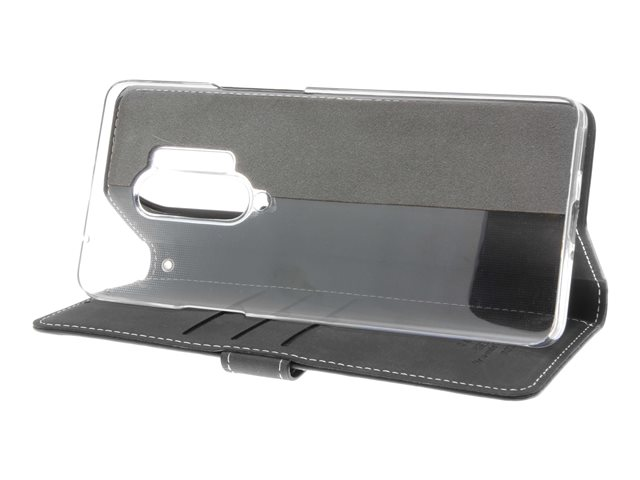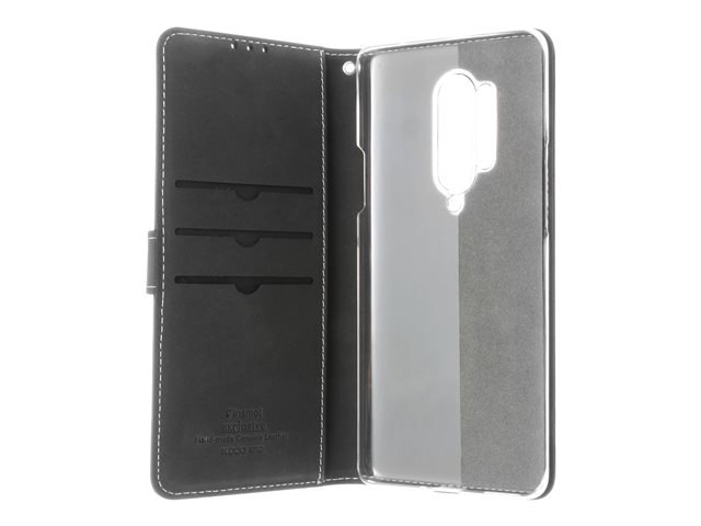 Insmat Exclusive Flip Case - Lommebok for mobiltelefon - ekte skinn, papir, kartong, polykarbonat, aluminiumsfolie - svart - for OnePlus 8 Pro 650-2855