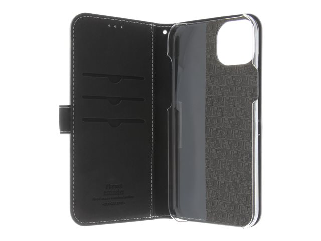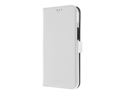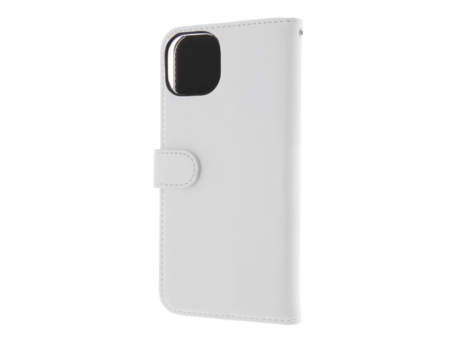 Insmat Exclusive - Lommebok for mobiltelefon - ekte skinn, polykarbonat, kartong+papir+aluminiumsfolie - hvit - for Apple iPhone 15 650-3188