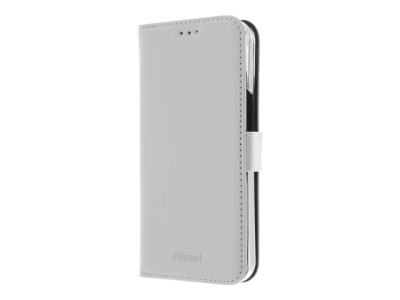 Insmat Exclusive - Lommebok for mobiltelefon - lær, polykarbonat, kartong+papir+aluminiumsfolie, bomullssting - hvit - for Apple iPhone 14 650-3100