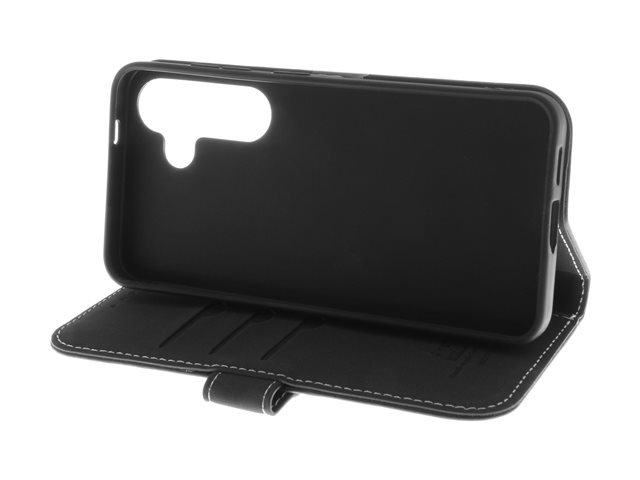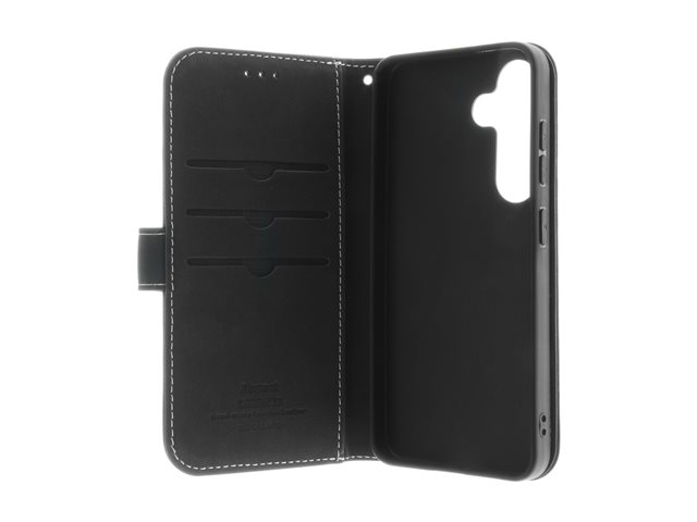 Insmat Exclusive - Lommebok for mobiltelefon - lær, kartong+papir+aluminiumsfolie, termoplastisk polyuretan (TPU) holder, bomullssting - svart - for Samsung Galaxy S24+ 650-3220