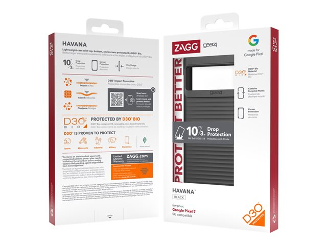The sleek, stylish Havana case incorporates D3O Bio, made from 45% plant-based material with no compromise on impact protection, into the top and bottom bumpers to protect the most vulnerable parts of your phone. Designed for end-of-life, the removable bumpers are recyclable when you're done with the case. The Havana is drop resistant from up to 10 feet (3 meters).