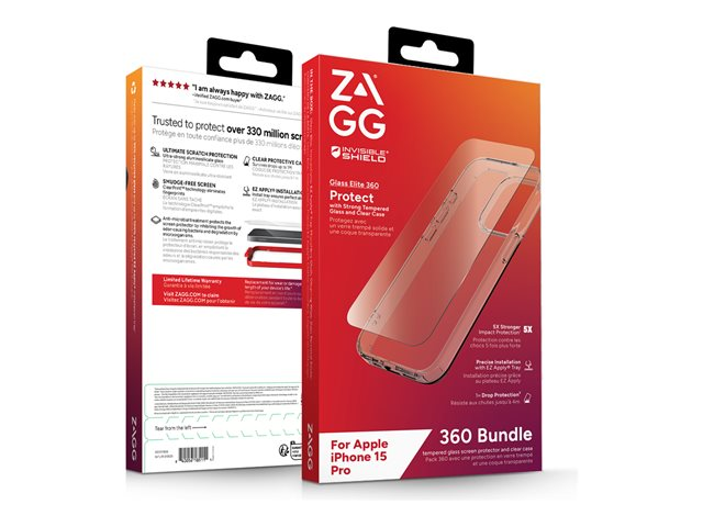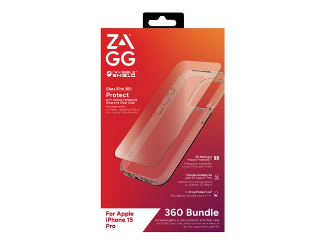 Zagg InvisibleShield Glass Elite 360 - Beskyttelsesboks for mobiltelefon - glass, polykarbonat - blank - for Apple iPhone 15 Pro