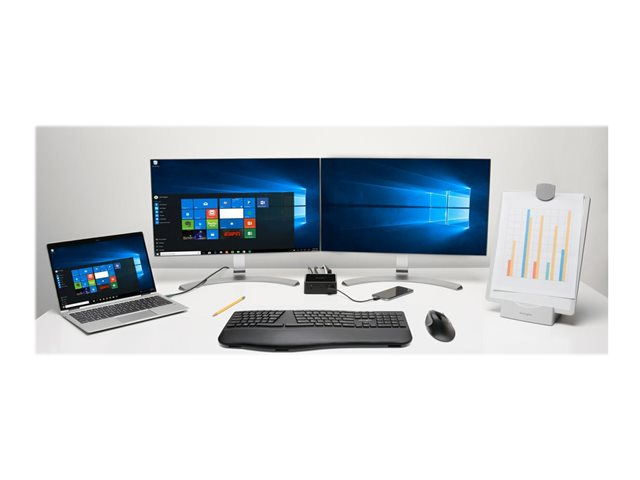 Kensington Pro Fit Ergo Wireless Mouse - Mus - ergonomisk - 5 knapper - trådløs - 2.4 GHz, Bluetooth 4.0 LE - USB trådløs mottaker - svart - løsvekt