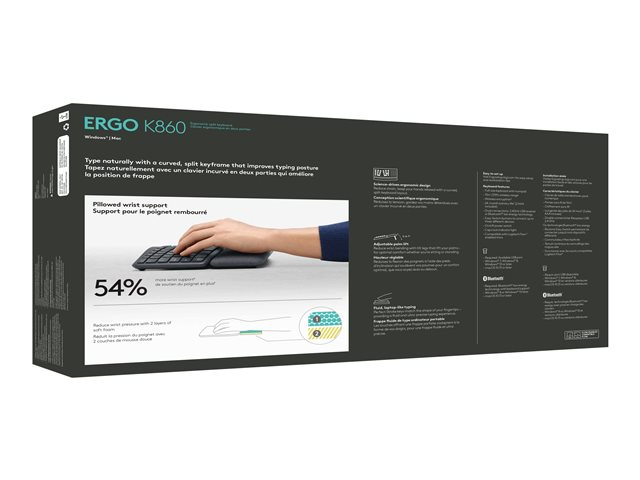 Logitech ERGO K860 - Tastatur - trådløs - 2.4 GHz, Bluetooth 5.0 - Pan Nordic 920-009168