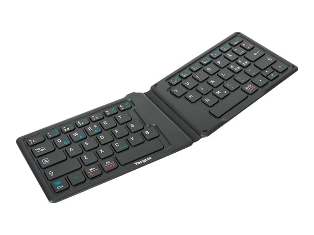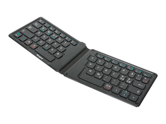 Targus Folding Ergo Nordic-language Keyboard infused with antimicrobial protection. An ergonomic pocket-sized keyboard, offering universal compatibility, it pairs and stores up to three devices in its memory. With a battery life of 36 hours you can type and create in comfort, wherever you are.