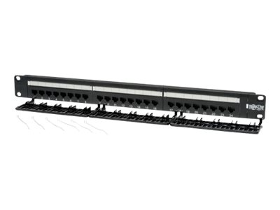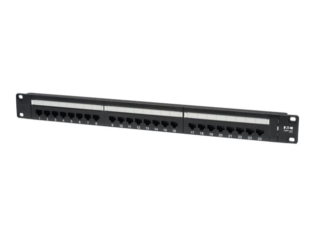 Eaton Tripp Lite Series 24-Port Cat6 Cat5 Patch Panel er en viktig komponent for enhver nettverksinfrastruktur. Dette patchpanelet er designet for montering i et 1U rack og gir et sentralisert sted for terminering av nettverkskabler. Panelet støtter CAT 6-kabling, noe som sikrer høyhastighets dataoverføring og pålitelig tilkobling for alle tilkoblede enheter. Med 24 RJ-45-porter har det plass til et stort antall tilkoblinger, noe som gjør det ideelt for bedrifter og datasentre som ønsker å utvide nettverket sitt. 110-type terminering og T568B-koblingsskjema sørger for et sikkert og standardisert oppsett, samtidig som samsvar med UL-standarder garanterer sikkerhet og ytelse. Den slitesterke metallkonstruksjonen og kompatibiliteten med 19" rack gjør den til et allsidig og pålitelig valg for organisering og optimalisering av nettverkstilkoblinger.