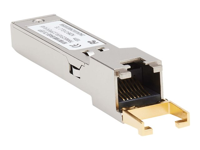 Eaton Tripp Lite-serien introduserer den Cisco-kompatible GLC-TE SFP-transceiveren, en kobberbasert RJ45 Cat6-modul som er utformet for å forbedre nettverksfunksjonene dine. Med støtte for Ethernet 1000Base-TX og en dataoverføringshastighet på 1 Gbps er denne transceivermodulen utviklet for å legge til rette for sømløs og effektiv nettverkskommunikasjon over en avstand på opptil 100 m (328 fot). Den har toveisfunksjoner, en MDI/MDI-X-bryter og er hot-swap-kompatibel, noe som sikrer minimal nedetid og enkelt vedlikehold. Den er i samsvar med viktige standarder som EMI, MSA og RoHS, og oppfyller dermed kravene til miljø- og sikkerhetsoverensstemmelse. Enten du oppgraderer et eksisterende nettverk eller setter opp et nytt, tilbyr den Cisco-kompatible GLC-TE SFP-transceiveren en pålitelig og holdbar løsning av høy kvalitet for nettverksbehovene dine.