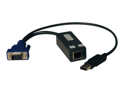 The Tripp Lite NetCommander USB Server Interface Unit (SIU) connects to the HD15 port and USB port on a computer/server, and converts them to a single RJ45 connector. Ordinary Cat5e patch cables can then be used to connect the server to the switch ports on a Tripp Lite B070 / B072-Series NetCommander Cat5 KVM switch. Use of Cat5e cables frees up space in the installation that would ordinarily be filled by traditional, thicker KVM cables. Compliant with the Federal Trade Agreements Act (TAA) for GSA Schedule purchases.