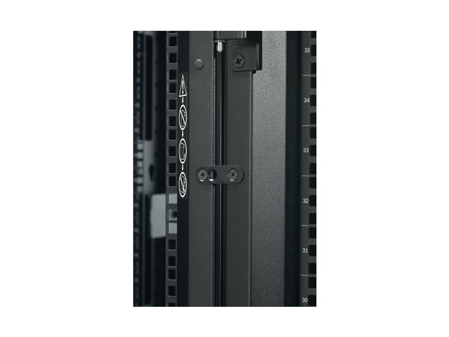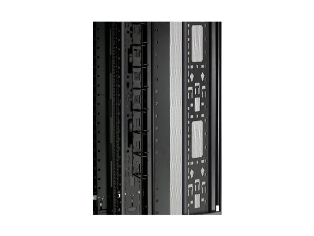 - Mounts two APC metered PDUs in one rear channel;