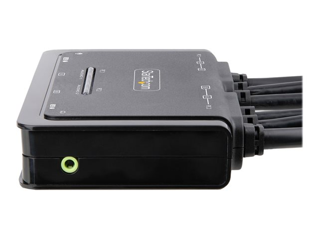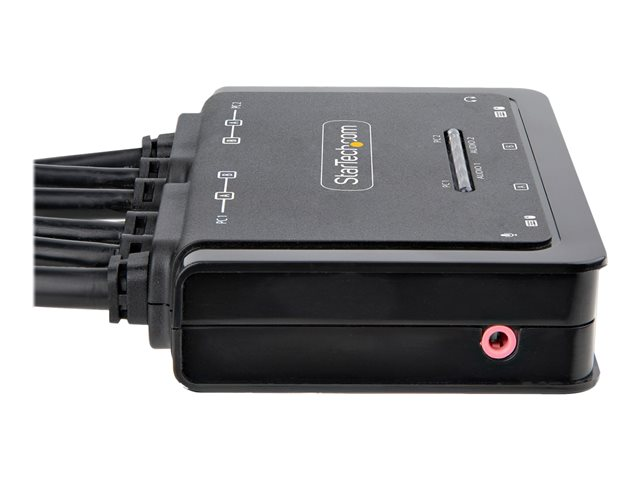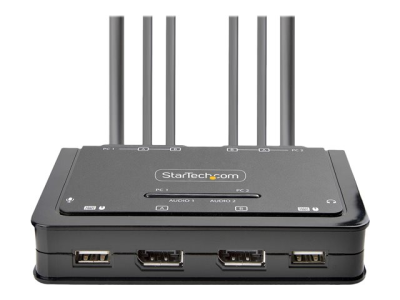 StarTech.com 2-Port Dual-Monitor DisplayPort Cable KVM Switch, 4K 60Hz, Compact KVM with 5ft/1.5m USB-A/DisplayPort/Audio Integrated Cables, Bus Powered - Remote Push Button/Hotkey Switching (C2-DD46-UA2-CBL-KVM) - KVM / lyd / USB-svitsj - kompakt - 2 x KVM/lyd/USB - 1 lokalbruker - stasjonær C2-DD46-UA2-CBL-KVM