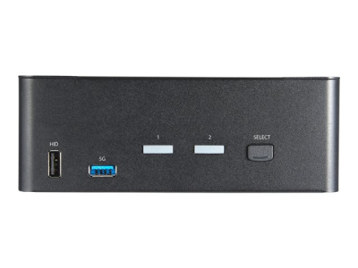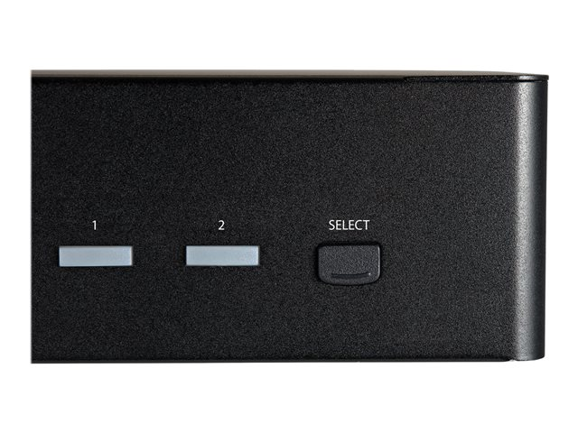 This two-port KVM switch combines 4K (60Hz) digital display capabilities with control of two connected computers.