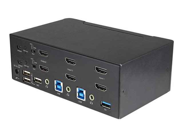 StarTech.com 2 Port Dual Monitor HDMI KVM Switch, 4K 60Hz Ultra HD HDR, Desktop 4K HDMI 2.0 KVM Switch with 2 Port USB 3.0 Hub (5Gbps) & 4x USB 2.0 HID Port, Audio, Hotkey Switching, TAA - KVM with Fast Switching - KVM / lydsvitsj - 2 x KVM/lyd - stasjonær - TAA-samsvar