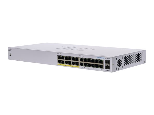 Cisco Business 110 Series 110-24PP - Switch - ikke-styrt - 12 x 10/100/1000 (PoE) + 12 x 10/100/1000 + 2 x kombo-Gigabit SFP - rackmonterbar, stasjonær, veggmonterbar - PoE (100 W) CBS110-24PP-EU