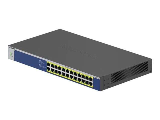 The NETGEAR Gigabit Unmanaged Switch series helps your business cost-effectively expand your network to Gigabit speeds and higher port counts. The GS524PP joins the series and offers 24 PoE+ ports to power high-power PoE devices. With a total PoE power budget of 300W, deploy denser PoE+ devices to a single switch rather than multiple.