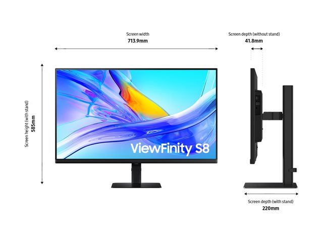 The Samsung ViewFinity S8 combines sophisticated design with advanced technology, tailored for professionals who seek quality and functionality. This 32-inch LED-backlit LCD monitor delivers stunning 4K UHD resolution and supports HDR10, enhancing the depth of blacks and the vibrancy of colors in visual content. With a dynamic contrast ratio of Mega 8 DCR and a wide color gamut covering 99% sRGB, it achieves precise color accuracy and lifelike images. The monitor also offers advanced connectivity options, including a built-in KVM switch for controlling multiple devices with a single set of peripherals, and a USB 3.0/USB-C hub for efficient data transfer and power delivery up to 90 watts. Designed to provide a clutter-free workspace without compromising performance, its ergonomic design with flexible height adjustment, pivot, swivel, and tilt functions, ensures comfort during prolonged use, making it an excellent choice for enhancing productivity and viewing experience.