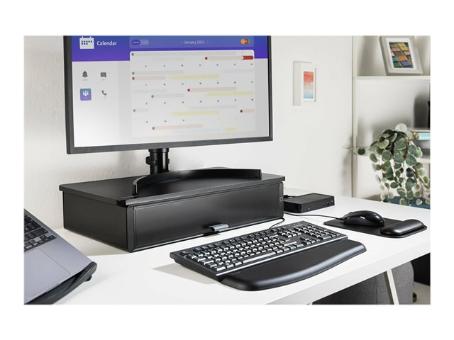 When used as directed, the UVStand Monitor Stand with UVC sanitization compartment safely and easily helps to sanitize keyboards, mice, trackballs, mobile phones and other devices, while promoting healthy posture and optimal comfort. The spacious sanitization compartment accepts most full-sized keyboards and can be used to store desktop items when not sanitizing, freeing up desktop space. The fully-contained UVC LEDs safely sanitize, eliminating up to 99.9% of bacteria and viruses on any exposed surface within 10 minutes, without the use of chemicals, liquids or wipes. Supports monitors up to 18kg (40lbs) and can also be used as a laptop stand, raising the laptop to optimal eye level.