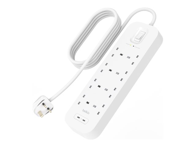 Belkin Connect - Overspenningsavleder - med 2 USB-C-porter - utgangskontakter: 8 - 2 m kabel