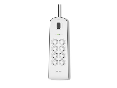 • Has eight outlet surge strip