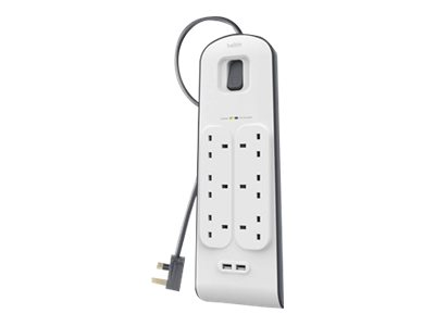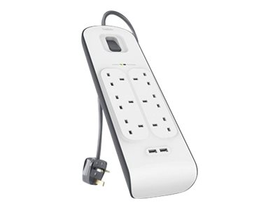 Keep your electronic devices protected from dangerous power surges and spikes with the Belkin 6-outlet Surge Protection Strip with 2 USB Ports. Simply plug the surge protection strip into any AC wall outlet and connect up to six AC and two USB devices to keep them safe from power surges, lightning strikes, and AC contamination. Ideal for laptops, DVD players, gaming consoles, speakers, and other medium-sized electronics, the Belkin Surge Protection Strip is made with high-quality circuitry and premium absorptive materials to protect your devices and data.